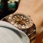 ヨットマスターのチョコレート色と文字盤のサイズ感が気に入って購入。DAYTONAのコンビも使っているが、コンビでも腕に着けた時にいやらしく感じない、エバーローズゴールドが魅力的だった。