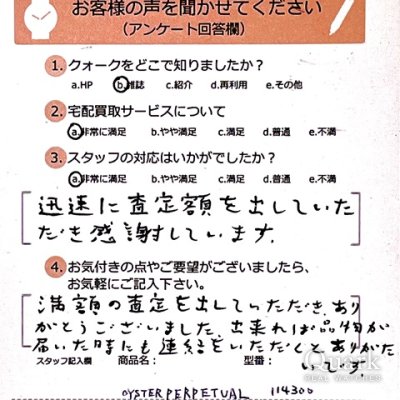 某チェーン買取店で提示された金額よりはるかに高く買取して頂けて嬉しく思っています。