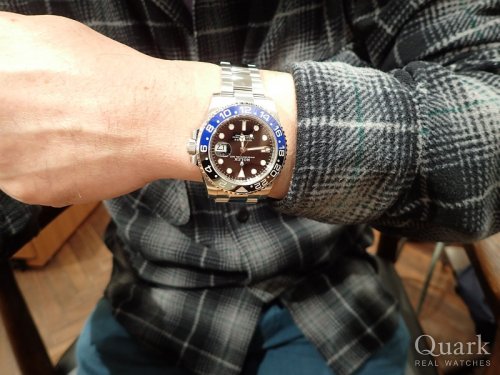 F様 いつもクォーク心斎橋店をご利用頂き本当にありがとうございます。この度、ご購入頂きましたGMTマスターIIの青黒ベゼルは他のモデルに無いカラーリングで目を引くモデルで、腕元のアクセントとしてご活用頂けること間違いないと思います。末永くご愛用頂ければ嬉しく思います。また、時計の簡単なメンテナンスはいつでもサービスで行っておりますので、いつでもお気軽に遊びにいらして下さいませ。今後ともクォーク心斎橋店を宜しくお願い致します。クォーク心斎橋店 西川