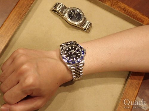 M様 いつもクォーク仙台店をご利用くださいまして誠にありがとうございます。また、お褒めのお言葉を頂戴しまして大変恐縮でございます。今回のお時計は、前作のツートンカラーベゼルを継承、ブレスがジュビリータイプになったGMTマスターII「Ref.126710BLNR」でございますね。鮮やかなブルーと落ち着いたブラックのベゼル、GMT針のブルーが印象に残る素晴らしいモデルです。また、現行スポーツモデル唯一のジュビリーブレスは、新しい定番になりそうですね! サンダーバードと着け替えをお楽しみくださいませ。今後もしっかり対応いたしますので、どうぞよろしくお願いいたします。