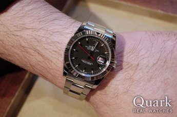 EX-2とデイトジャストⅡなど色々と悩みましたが、赤い秒針・モデル表記と遊び心があり、試着し一番しっくりときたのでこのモデルに決めました。