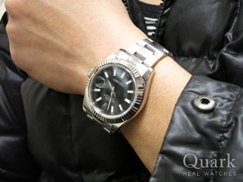 E様、この度はデイトジャストⅡのお買い上げ誠にありがとうございました。私も時計を選ぶときは印象を大事にしています。E様の腕にバランス良くフィットしておりました。(スタンダードのデイトジャストは確かに小振りに感じてしまいました。)3列のブレスレットがスポーティーな雰囲気を出していますのでシーンを選びません。永くご愛用いただけますと幸いでございます。 クォーク心斎橋 店長 西口