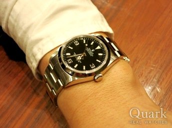 以前ロレックスを購入した際、エクスプローラー1かエクスプローラー2にするか迷った結果、エクスプローラー2を購入しました。 2年程使用しましたが日付操作が手間だと感じてくるとシンプルなエクスプローラー1への思いが再燃してきました。 クォークのホームページはよく見ていて、今回問い合わせをしてみると気になる商品が見つかり、これもタイミングだなということで購入しました!