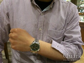S様 この度は当店をご利用下さいまして、誠にありがとうございます。今回色々なモデルでお悩み頂きましたが、最終的に以前より気になられていらっしゃったミルガウス Ref.116400GVで決まりですね!他モデルでは存在しないグリーンクリスタルのデザインが目を惹き、大変S様にお似合いでございました!今後、ご使用頂く上で何か気になる点等ございましたら、お気軽にお申し付け下さいませ。末長いお付き合いの程、宜しくお願い致します。クォーク仙台店 佐藤