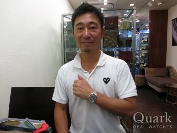 A様、この度はクォーク心斎橋店をご利用頂き、誠にありがとうございます。お選び頂いた新型サブマリーナーはA様の逞しい腕元にとてもよくお似合いです。デザインもシンプルでスッキリしており、これからお仕事に、そしてあらゆるプライベートシーンにて活躍する機会がとても多いモデルですので、末永くご愛用頂けたら幸いです。サイズ感など気になられる点がございましたら、いつでもご連絡ください。またのご来店をお待ちしております。 クォーク心斎橋店 西村