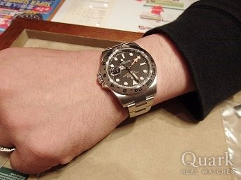 M様 この度は、クォーク横浜店にご来店ならびにご購入を頂きまして、誠にありがとうございました。モデルチェンジでサイズアップしたエクスプローラーIIは、M様の屈強な腕元にとても似合っていて、一緒にお求め頂いたT様も、清潔感の漂う爽やかな白文字盤がとても似合っており、お二人を見ていてとても嬉しくなりました。数ある時計店の中から、当店をお選び頂いた事を心より御礼申し上げます。今後はブレスレットの洗浄など、ご用の際はお気軽にご相談下さいませ。大切なロレックスを安心してご愛用頂けますよう、しっかりサポートさせて頂きますので、長いお付き合いの程、宜しくお願い致します。横浜店 長本