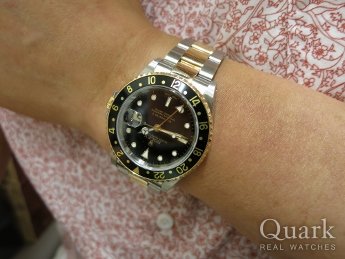 M様、いつもご利用いただき誠にありがとうございます。初のコンビモデル、大変お似合いでございました。仰られる通り、現行のコンビモデルよりも金の主張が控え目でさりげなくお使いいただけると思います。GMTマスターのコンビはブラウンダイヤルが主流で、ブラックダイヤルの流通量は少なく希少なモデルです。良いお品物をご案内できて大変嬉しく感じております。また何かありましたら、お気軽にご相談くださいませ。 クォーク心斎橋店 店長 西口