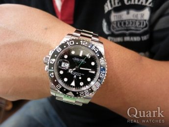I様、この度はお買い上げ頂きありがとございました。GMTはケース形状・サイズなどのバランスが綺麗でフィット感も抜群。更に存在感も併せ持ったモデルです。スーツスタイルでも上品に合わせることができます。末永くご愛用いただけましたら幸いです。何かございましたらお気軽にご相談くださいませ。ご紹介いただきましたI様にもお礼申し上げます。ありがとうございました。 クォーク心斎橋店 店長 西口