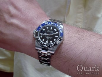HP上でクォークさんを知り寄らせて頂いたところ、GMT-マスターⅡの青/黒が展示されてましたので、尾崎さんと商談し即決しました。