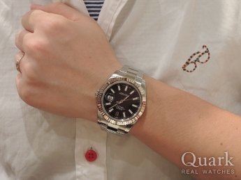 F様 この度はクォーク梅田店にお越し頂きまして誠にありがとうございます。今日はゴルフが中止になって良かったです(笑)ギラギラ感は十分にありますが、全く嫌らしくなく勿論お仕事でもプライベートでも場所を問わず着けて頂けます。ブラックが引き締まってカッコイイです!奥様にも気に入って頂けたようで嬉しく思います。又ご不明点等ございましたらいつでもご相談下さい!ありがとうございました。