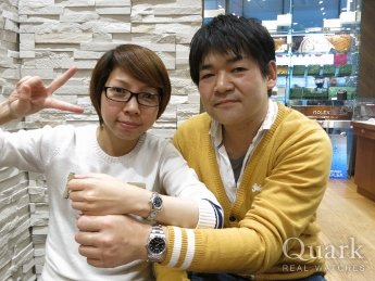 N様、T様 この度は、私共クォークをご利用頂き、また、お忙しい中何度も足をお運び頂き、誠に有難う御座いました。いろいろとお悩み頂きましたが、じっくりお選び頂きましたペアウォッチ、やはりお二人で着けて頂くと素敵ですね。N様のOY.PP.LADYSモデルは、バーインデックスがホワイトでしたので、時間もとても見易いデザインとなっています。また、シックなお色ですので、お洋服の色も拘らずどんな感じでもご使用頂けるかと思います。お二人で仲良く、そして末長くご愛用頂けましたら幸いです。これからのメンテナンス等もしっかり対応させて頂きますので、お気軽にお申し付けください。お時間が御座いましたら、またお二人でお店にお立ち寄りください。お待ち致しております。今後とも、どうぞ、宜しくお願い致します。 クォーク仙台店 麻生