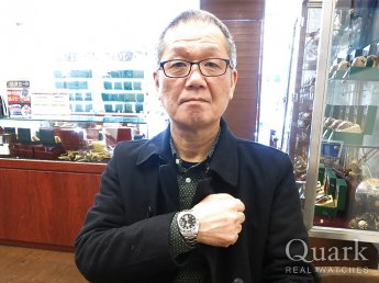 この度は、当店にてエクスプローラーIIのブラックダイヤルを購入頂きましてありがとうございます。大型ケースのエクスプローラーII がとてもお似合いだと感じました。60歳を前にしたご自身へのご褒美とお聞きしましたので、末永くご愛用頂けることと存じますが、ブレスの汚れ等が気になりましたら何時でもお気軽にお持ち下さい。ブレス洗浄をさせて頂きます。今後とも時計を通じた末永いお付き合いの程、宜しくお願い申上げます。