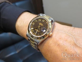 イエローゴールドコンビでシャンパン文字盤のモデルを探していましたが、デイトジャストIIのサイズ感とブラック文字盤の重厚感ある雰囲気に魅了されました。