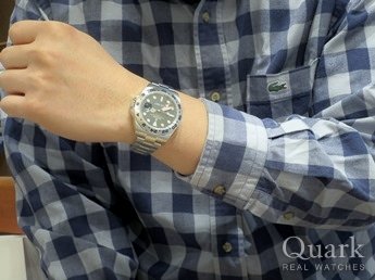 M様 お誕生日おめでとうございます!大切な日に当店をご利用頂いた事、改めましてお礼申し上げます。サイズアップした42ミリの新型ケースがM様にとっても似合っておりました。M様の腕元ですと、40ミリ以上がベストだと思います。デイトナと悩まれたようですが、この時計をご試着なさった時には、もう気持ちが固まっていたように見えました。それ位、似合っていました!!しばらくは職場の方やご友人様と、ロレックス話で盛り上がりそうですね(笑) 大切なロレックスを12年保証でしっかりサポートさせて頂きますので、今後とも長いお付き合いの程、宜しくお願い致します。 クォーク横浜店 長本