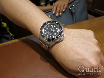 M様 この度はクォーク心斎橋店をご利用頂き、誠に有難うございました。お選びになられたディープシーは、ロレックス ダイバーズシリーズの中でもとりわけ存在感のあるモデルです。まもなくディープシーの性能・デザインを最大限発揮できる季節を迎えますので、その魅力をぜひご堪能ください。存分にお楽しみ頂いた後は、ブレスレットの洗浄などアフターサービスも承りますので、お気軽に店舗にもお立ち寄りください。お待ち致しております。有難うございました。 クォーク心斎橋店 鈴木