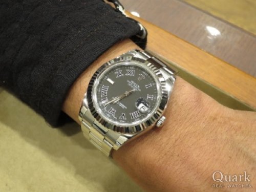 K様、この度はクォークなんば店にてご購入頂きまして誠に有難うございました。何度も足を運んで頂く形となってしまいまして申し訳ございませんでした。K様のご希望に合う良い商品があって良かったです。デイトジャストIIはK様の仰る通りシンプルかつ高級感のある時計です。文字盤もマット調のブラックですので落ち着いた雰囲気となっております。まだまだ登場してから数年のモデルですので周りと被る可能性も低いと思います!末永くご愛用頂ければ幸いです。今後も何かありましたら私、佐野までお気軽にご相談下さいませ。 クォークなんば店 佐野