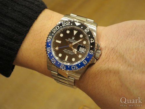 O 様 この度はクォーク新宿店をご利用頂き、誠にありがとうございました。サブマリーナーと悩まれておりましたが、他の人と重複する事が少なく、何より、お兄様のお持ちの赤青ベゼルに憧れていたとのことですので、GMTマスターの青黒ベゼルで大正解かと思います。O様のご職業柄、お仕事中にお召しになる事は難しいかと思いますが、お休みの日には是非お召し頂き、ロレックスライフを楽しんで頂ければと思います。それでは今後共末永いお付き合いの程、宜しくお願い致します。 クォーク新宿店 矢吹