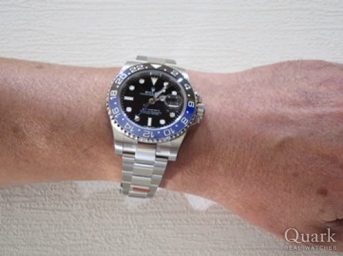 Y様 この度は当店をご利用下さいまして、誠にありがとうございます。ご購入下さいました現行型GMT-MASTERIIはブラック/ブルーの配色が世界的に人気が高く、発売当初から支持を集め続けております。また、作りの良さにも定評があり装着感も素晴らしいモデルとなっています。今後ご使用頂く上でサイズや何か気になる点等ございましたら、お気軽にお申し付け下さい。末永いお付き合いの程、宜しくお願い致します。