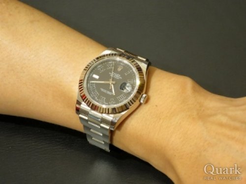 H様 この度はクォーク梅田店をご利用いただきまして、誠にありがとうございました。ご購入後、お時計の調子は如何でしょうか?デイトジャストIIはケース径が41ミリあり、腕元での存在感は抜群にあります。文字盤のブラックもマットな色合いで落ち着いて見える為、ビジネス・プライベートの区別無くお使い頂けると思います。ぜひとも、末永くお使い頂けましたら幸いでございます。また、ご使用に関してご不明点等がございましたら、いつでもお気軽にご相談下さいませ。店頭にてブレスレットの洗浄サービスもしておりますので、お近くにお越しの際は、ぜひお立ち寄り頂ければと思います。H様のまたのご来店を心よりお待ちしております。 クォーク梅田店 松原