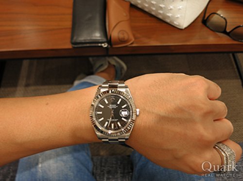 S様 いつもクォーク名古屋店をご利用頂き、誠にありがとう御座います。とっても男らしいご決断でした!お選び頂いたDATEJUST II Ref.116334 ブラックは、高級感に溢れるデザインですが、大型ケースにオイスターブレスを組み合わせたスポーティな印象もあり、人気を集めています。S様にとてもお似合いでした。頂いたお写真まで拘って頂いて嬉しく思います。とても良いお写真ですね!本当にありがとう御座いました。今後も御時計の事でご相談等が御座いましたら、ご遠慮無くお申し付け下さい。今後とも末永いお付き合いの程、宜しくお願い致します。