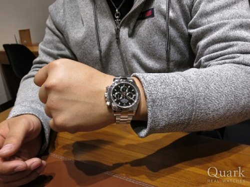 K様 この度はクォーク心斎橋店をご利用頂き誠に有難うございました。一目惚れしたお気持ち、よく分かります。クロノグラフの仕様をデザイン性にも反映させ、オールステンレスながら伝わる高級感はさすがスポーツモデルの最高峰と呼ばれるデイトナですね。納得の1本を見つける為、1日お探しになられていたとの事でございましたが、ご案内できる商品があり、私も嬉しく感じております。今後、末永くご愛用頂けます様、私共がサポート致しますので、何かございましたらお気軽にご相談ください。有難うございました。