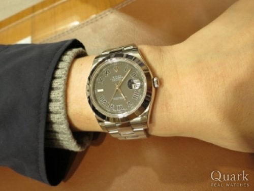 S様、この度はクォーク梅田店をご利用頂きまして誠に有難うございます。今回お選び頂いたデイトジャストII Ref.116300 ブラックローマダイヤルは見比べて頂いたブラックバーダイヤルと比べて色目がグレーに近く、S様の優しい雰囲気にとても良くお似合いですね。デザインもスッキリとしたシンプルなモデルですので、幅広いシーンで着用をお楽しみ頂けると思います。今後ともS様のお役に立てるよう努めて参りますので、ご不明な点などございましたらお気軽に仰ってくださいませ。またのご来店を心よりお待ちしております。