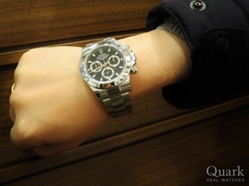 いつもクォーク横浜店をご愛顧賜り誠にありがとうございます。最初にご相談をいただいてから1年くらい経ち、デイトナを取り巻く状況や価格が変動する中、2016年最終仕様のSSデイトナのご決断は、なかなか勇気が要るものだったとは思いますが、圧倒的に流通の少ない最終仕様の個体は、今後の動向も楽しみな資産性にも優れた1本だと思います。デイトナのシャープなケースデザインは、際立つブラック文字盤やステンレスベゼルとマッチしていて、H様の腕元にも大変収まりが良く似合っておりました。ご職場での反応が私も楽しみです!いつもH様とのお話が楽しくて、ついつい時間が経つのを忘れて話し込んでしまい、時計の話題よりもそれ以外で盛り上がってしまって(笑)申し訳ないですが、某お店さんに負けないくらい耳よりな情報をご提供できるよう、アンテナを張り巡らせて参りますので、今後ともお付き合いくださいませ。また2月中旬にでも私の土産話聞きにいらしてくださいね。 クォーク横浜店 長本
