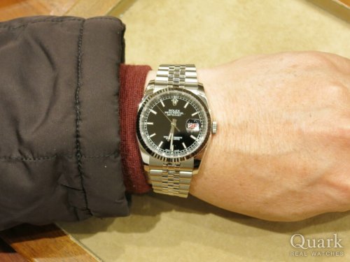 F様 この度はクォーク広島店をご利用頂きまして誠に有難うございます。今回お選び頂きました116234は数あるロレックスの中でも高い知名度を誇っております。特にこちらの黒文字盤のカレンダーは奇数が赤・偶数が黒の仕様がこのモデルならではの魅力ポイントとなります。今後はしっかりとサポートさせて頂きますので、末永いお付き合いの程、宜しくお願い致します。広島店 劉