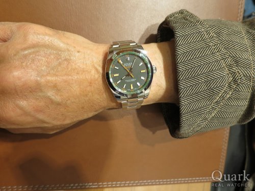T様、この度はクォーク梅田店をご利用頂きまして誠に有難うございます。今回ご購入頂きましたミルガウス Ref.116400GV ブラックはイナズマ針やグリーンサファイヤガラス等、他のモデルとはひと味違ったデザインを楽しんで頂けるモデルでございます。以前ご使用されていたデイトジャストとガラッと雰囲気が変わり、新鮮なお気持ちで楽しんで頂けるのではないでしょうか。オンオフ問わず幅広いシーンでご使用頂けますので、どうぞ末永くご愛用くださいませ。今後とも宜しくお願い致します。 クォーク梅田店 西村
