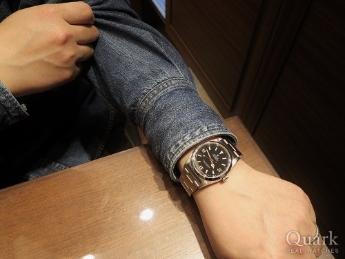この度は、クォーク横浜店にてエクスプローラーI をご購入いただきまして誠にありがとうございました。偶然にもこの日、エクスプローラーI の同型が3本あり、じっくり見比べていただけたのはラッキーでしたね!書体の違いに注目されたのには驚きました。その中でもスッキリした書体が特徴の高年式をお選びいただきましたが、実際に見た際のフィーリングはとても大事だと思いますので、自分好みの一本に巡り合えたこと、そして、そのお手伝いをさせていただいた事を大変嬉しく思います。定期的なブレスレット洗浄や点検もさせていただきますので、休日やお仕事帰りにも、いつでもお立ち寄りくださいませ。今後ともよろしくお願いいたします。