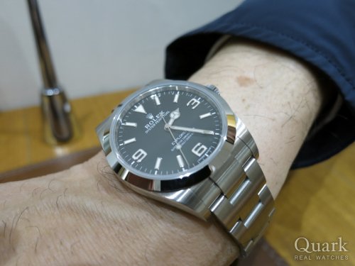K様、この度はエクスプローラーI Ref.214270をお買い上げいただき誠にありがとうございます。その後使い心地はいかがでしょうか。ブレスレットのサイズ等、ご不便はございませんでしょうか。気になる事がございましらお気軽にご相談頂けますと幸いでございます。当モデルはケースサイズ39mmと腕に馴染むサイズで、着用シーンを選ばず活用できるモデルでございます。末永くご愛用頂けますと幸いでございます。K様の雰囲気に大変お似合いでございました。今後ともクォーク心斎橋店を宜しくお願い致します。