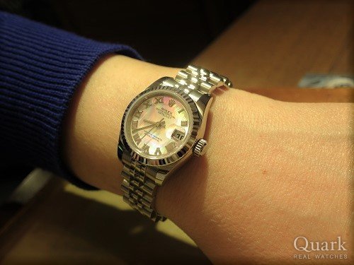 いつもクォーク横浜店をご愛顧賜り誠にありがとうございます。今回ご覧いただいた2つのピンクシェルのお時計たちは、雰囲気が異なるものでしたが、どちらも本当に美しい色合いで、私も一緒にH様と悩んだり、ワクワクしたり、楽しい時間を過ごすことができました。どちらのピンクシェルもお似合いでしたので、どちらをお選びいただいても、H様に似合う自信はありましたが、最終的にお選びいただいたピンクシェルは、ピンクの濃さ、バランスの良いレインボーカラー、どの角度から見ても美しい色合いで、H様の雰囲気にピッタリでした!神秘的なオーロラのようなレインボーカラーは、見る度にうっとりすると思いますので、どうぞ癒されてくださいね!ご対応させていただいた長本・三好ともにご購入のお手伝いができた事を大変嬉しく思います。今後ともよろしくお願い致します。 クォーク横浜店 長本・三好