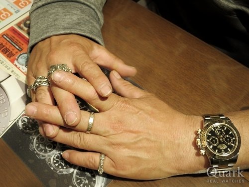 この度は、クォーク横浜店でご購入いただき誠にありがとうございました。黒文字盤とイエローゴールドのコントラストは、腕に着けると存在感バツグンなのですが、むしろその強烈なインパクトがY様のファッションや雰囲気に大変似合っておりましたし、これまた存在感バツグンのクロムハーツのリングとも相性が良く、とてもカッコ良く着けこなしてくださって嬉しい限りです。「キズは気にしないで使う」というY様のお言葉も印象的で、これから良き相棒としてご愛用いただくのだろうな、と思うと、喜びも一入です。今後とも安心してお使いいただけるよう、しっかりサポートさせていただきますので、今後ともよろしくお願い致します。