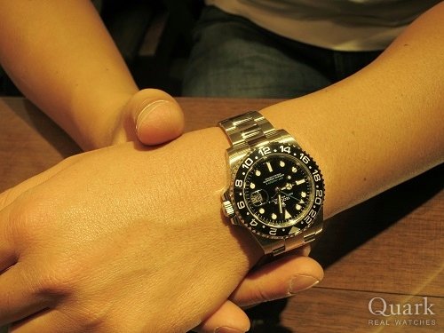 いつもご愛顧賜り誠にありがとうございます。今回ご検討いただいた2本ともお似合いで、どちらも普段使いにピッタリのモデルではありましたが、こうした回転ベゼルがついたデザインの時計は、適度なボリューム感が出ますので、これからの半袖シーズンにとても良く合う時計だと思います。使い方が他のモデルと違うのが少々扱いづらいですが、そのうち慣れると思います。一先ず夏の間は、このGMTマスターIIを可愛がってあげてくださいね(笑)また感想を聞かせていただくのを楽しみにしております。 クォーク横浜店 長本