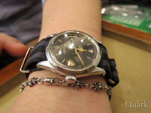F様 いつも私共クォークをご利用頂きまして誠に有難う御座います。エクスプローラーI Ref.1016 を気に入っていただき、とても嬉しく思います。希少性の高い6時ドット文字盤をご紹介出来、私も感動しております。ベルトの色合いとマッチして、最高に格好良いです。Ref.5513 と付け替えて楽しんで下さい!!今後とも末永いお付き合いの程、宜しくお願い申し上げます。クォーク横浜店 杉野