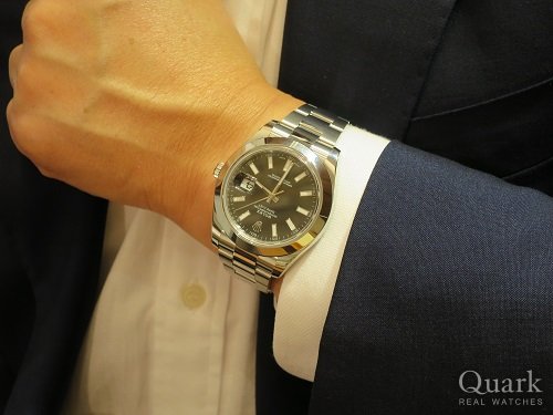 これまでもロレックスを着けていましたが、自分の腕回りに対して時計が小さいと友人から指摘されて、今回は41ミリのデイトジャストIIにしました。