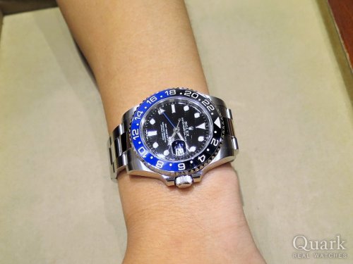 H様、この度はご遠方よりクォーク銀座888店をご利用頂きまして誠に有難うございます。念願であったロレックスのご購入おめでとうございます!!GMTマスターⅡの青黒ベゼルは美しさと堅牢さを兼ね備えた未だ流通量の少ない大人気モデルです。ステータス性の高さも感じられ、使っていくうちに愛着がわいてくるはずです。今後も末永くご愛用頂けましたら幸いで御座います。ブレス洗浄や何かお困りな事がございましたらお気軽にお申し付けくださいませ。今後もクォーク銀座888店を何卒宜しくお願い致します。