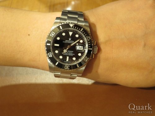 H様 この度はクォーク梅田店をご利用くださいまして誠にありがとうございます。今回お選び頂きましたサブマリーナーRef.11660LNは、フォーマルからカジュアルまで幅広くお使い頂ける定番のデザインが人気のモデルです!他のモデルとも迷われておましたが、とてもよくお似合いでしたので、今回の選択はH様にとってベストだと思います。是非末永くご愛用頂ければ幸いです。また、ブレスレットの洗浄及び調整なども無料で行っておりますので、近くに来られた際は是非遊びにいらして下さい。 クォーク梅田店 川田