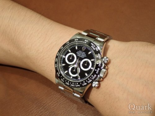 O様 この度はクォーク心斎橋店をご利用頂きまして、誠にありがとうございます。ご検討は頂いていたとのことですが、ロレックス初の時計がデイトナは驚きました。旧型のステンレスベゼルのフォーマル感とは異なるシックな現行モデルはベゼルのキズも気にせず使える1本だと思います。末永くご愛用頂けましたら幸いでございます。気になる部分やご不明点などございましたら、お気軽にご連絡下さい。今後ともクォーク心斎橋店もよろしくお願い申し上げます。
