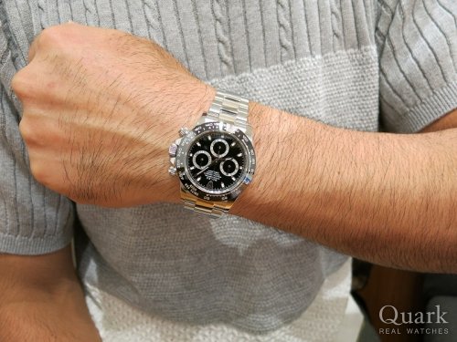 T様 いつも当店をご利用頂き誠にありがとうございます。ご購入頂きました新型デイトナは、着用した時の存在感は抜群でとてもよくお似合いになられていました。腕元が見えるこれからの時期にはピッタリのモデルと思いますので、着用シーンを選ばずご愛用頂ければ嬉しく思います。また、ブレスレットの洗浄もサービスで行っておりますので、いつでもお気軽に遊びにいらして下さいませ。今後ともクォークを宜しくお願い致します。