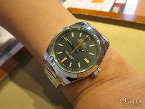 S様 この度はクォ―ク上野本店をご利用頂き誠にありがとうございます。今回はミルガウスRef.116400GVご購入のお手伝いが出来た事、大変嬉しく思います。2007年のバーゼルワールドで発表され当時はロレックス初のグリーンサファイヤガラスに多くの時計ファンが注目を浴びた事が記憶に新しいモデルです。ミルガウスと言えば帯磁性が有名ですが、ムーブメントを二重構造ケースで保護する事で1000ガウスの磁場にも耐えられる性能を確保しております。ご使用頂き確りとサポートさせて頂きますので何かございましたらお気軽にご相談下さいませ。宜しくお願いいたします。