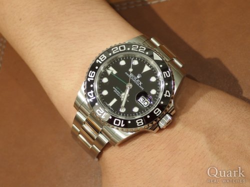 M様 この度はクォーク心斎橋店をご利用頂きまして、誠にありがとうございます。お選び頂きましたGMTマスターIIのブラックベゼルはシンプルな配色で仕事にプライベートにも使いやすいモデルとなっております。また、他のステンレスのスポーツモデルより価格も安定しておりコストパフォーマンスも高く、M様のお考えにも当てはまる1本かと思います。M様の雰囲気とも大変お似合いのように感じました。長くご愛用頂ければ幸いでございます。気になる部分やご不明点などございましたら、お気軽にご連絡下さい。今後ともクォーク心斎橋店もよろしくお願い申し上げます。