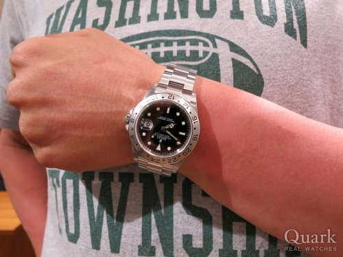 S様 この度は、クォーク心斎橋店をご利用頂きましてあことにありがとうございます。新型・旧型モデルで色々とお悩みされていましたが、着用された時のサイズ感や雰囲気は旧型エクスプローラーIIが良くお似合いになられていたと思います。着用シーンを選ばずにご使用頂けますので末永くご愛用頂ければ嬉しく思います。ブレスレットの洗浄サービスも行っておりますのでいつでもお気軽にお越しくださいませ。今後ともクォークを宜しくお願い致します。 クォーク心斎橋店 西川