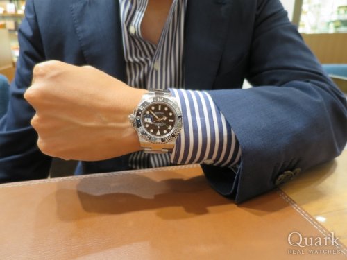 O様、この度はクォーク梅田店をご利用頂きまして誠に有難うございます。今回お選び頂いたGMTマスターII Ref.116710LNはセラミックベゼルや鏡面仕上げのブレスレットを装備したスポーツモデルの為、カジュアルシーンからビジネスシーンまで幅広くご使用頂けるかと思います。是非O様の相棒として末永くご愛用頂ければ幸いでございます。また操作方法などご不明な点などございましたらお気軽に仰ってくださいませ。またのご来店を心よりお待ちしております。