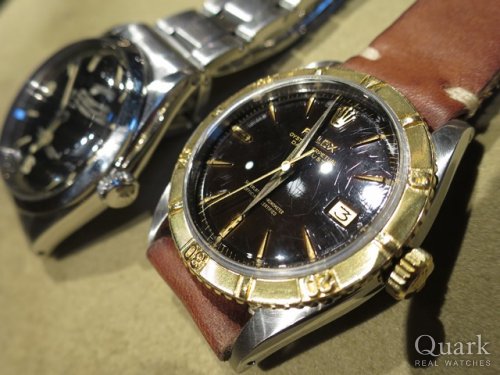 年末の6609金無垢に続き、イエローゴールドコンビを佐藤君に紹介して頂きました。金無垢モデルも大変素晴らしいモデルでしたが、今回のコンビモデルも同じか、それ以上で大変満足しています!少しブラウン化したミラーダイヤル、インデックス、ドルフィン針、そして念願のアップライトロゴ。一つ一つも大変魅力的ですが、それらが一つにまとまった感じがとても素晴らしく雰囲気が抜群にいいですね!こんな素晴らしく希少な時計を紹介してくれる佐藤君に只々感謝です!さすが佐藤君!って感じですかね!(笑)また、いつも上野本店の皆さんにはお世話になり、ありがとうございます。山崎さん、ミュージアムではお世話になり、ありがとうございました!即決ですいません!(笑)佐藤君、クォークの日もお世話になるんで、その時はまた宜しくお願いします!