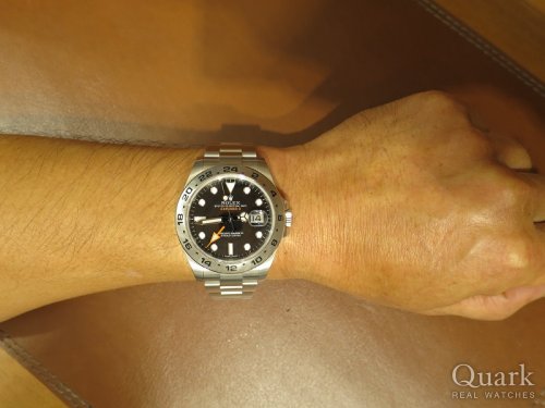 I様、この度はクォーク梅田店をご利用頂きまして誠に有難うございます。お選び頂きましたエクスプローラーII Ref.216570は42ミリの迫力のあるケース径に、目を惹く大きなオレンジの24時間針が魅力のモデルです。高いデザイン性・実用性でオン・オフ問わずご愛用頂けます。末永くご愛用頂けますよう、アフターフォローにもしっかりと努めさせて頂きますので、これかもクォーク梅田店を宜しくお願い致します。