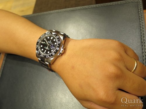 U様 この度はクォーク梅田店をご利用頂きまして、誠に有難うございます。今回お選びいただきましたGMT-MASTERⅡ Ref.116710LNは、スポーティーで緑色の24時間針が映える人気モデルです。また、U様がGMT-MASTERⅡに決められたポイントであるブレスレットの鏡面仕上げは、高級感があり、パイロットウォッチのイメージにピッタリのデザインでございます。他のモデルとも迷われていましたが、U様にとてもよくお似合いでしたので、おススメさせて頂きました!!多機能で、非常に便利なモデルになりますので、是非末永くご愛用頂ければ幸いです。今後ご使用されていく中でご不明な点などございましたら、お気軽にご相談下さいませ。今後ともクォーク梅田店をよろしくお願いいたします。クォーク梅田店 川田