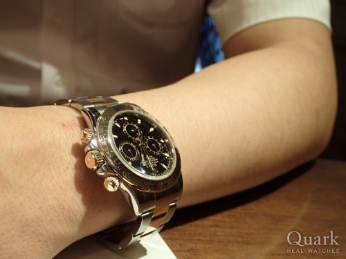 S様 この度はクォーク横浜店をご利用頂き、誠にありがとうございます。見比べて頂いたグレーダイヤルもいい感じでしたが、デイトナらしい精悍な印象を引き立てるブラックダイヤルは、間違いない選択だったと思います。ファーストロレックスにして最高の1本を、是非ご愛用下さいませ。今後は定期的なクリーニングからメンテナンスまで、S様の時計をサポートして参りますので、お気軽にクォークをご利用頂ければ幸いです。今後とも末永いお付き合いの程、宜しくお願い致します。