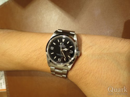 N様、この度はクォーク梅田店をご利用頂きまして誠に有難うございます。今回お選び頂いたエクスプローラーI Ref.114270は2010年に生産終了となった旧型モデルですが、36ミリケースの小振りなデザインが今でも根強い人気を集めております。これからN様に長くご使用頂けるようしっかりとサポートさせて頂きますので、何か気になる事などございましたらお気軽に仰ってくださいませ。またのご来店を心よりお待ちしております。
