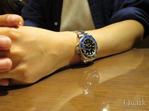 この度は、クォーク横浜店でのご購入誠にありがとうございました。2013年の登場から人気が衰えない青黒ベゼルのGMTマスターII は、ロレックス史上初のツートンカラーのセラミックベゼルを搭載した特別なモデルです。ロレックスの中で今、最も注目されている青を取り入れたデザインは、ON・OFFともに使いやすいお時計だと思います。また、S様のお仕事柄、GMT機能が活かせると思いますので、お仕事で使ってみての感想など聞かせていただくのが楽しみです。またブレスレット洗浄やメンテナンスなどでお会いできる日を楽しみにしております。今後ともよろしくお願いいたします。 クォーク横浜店 長本